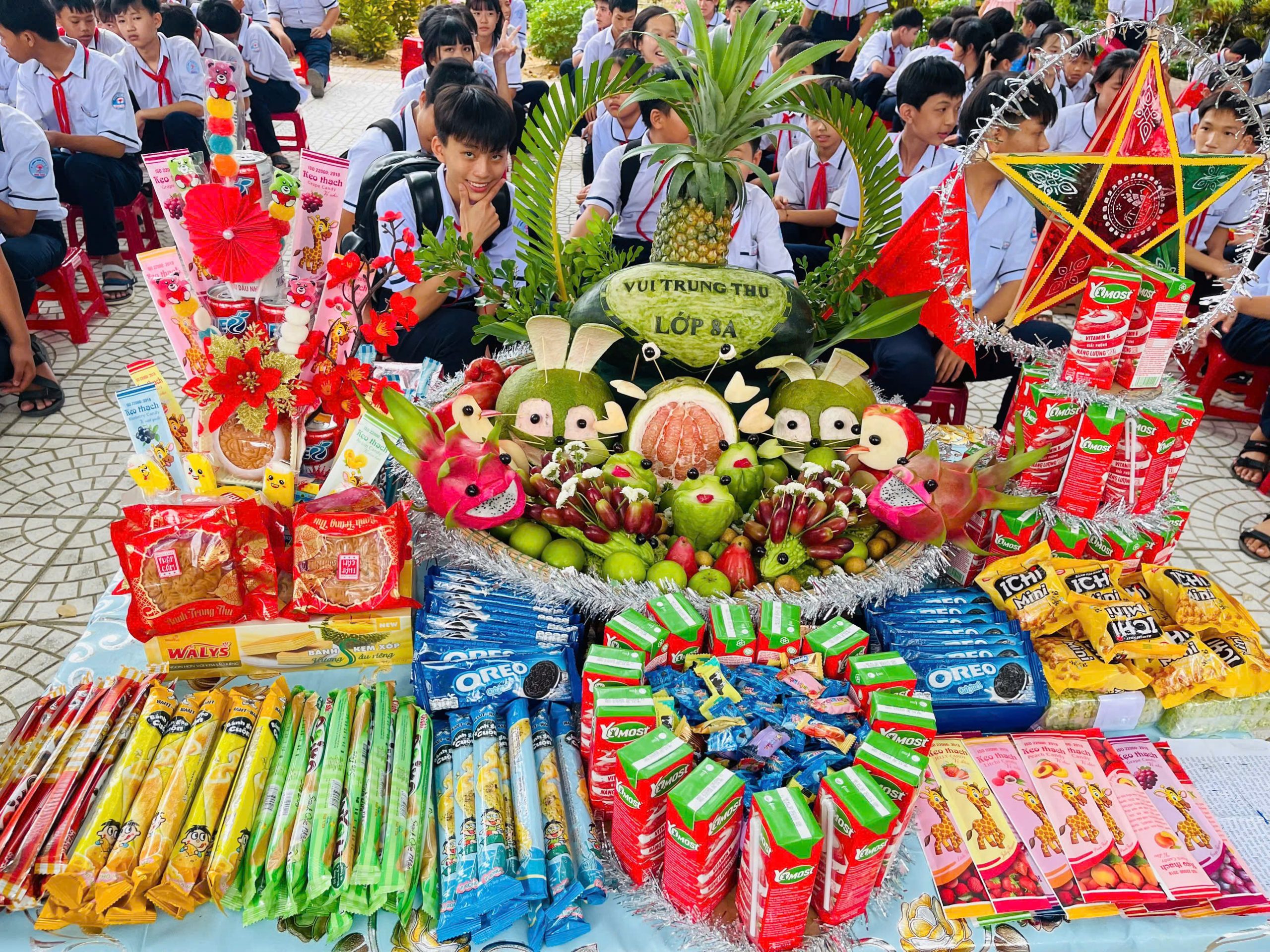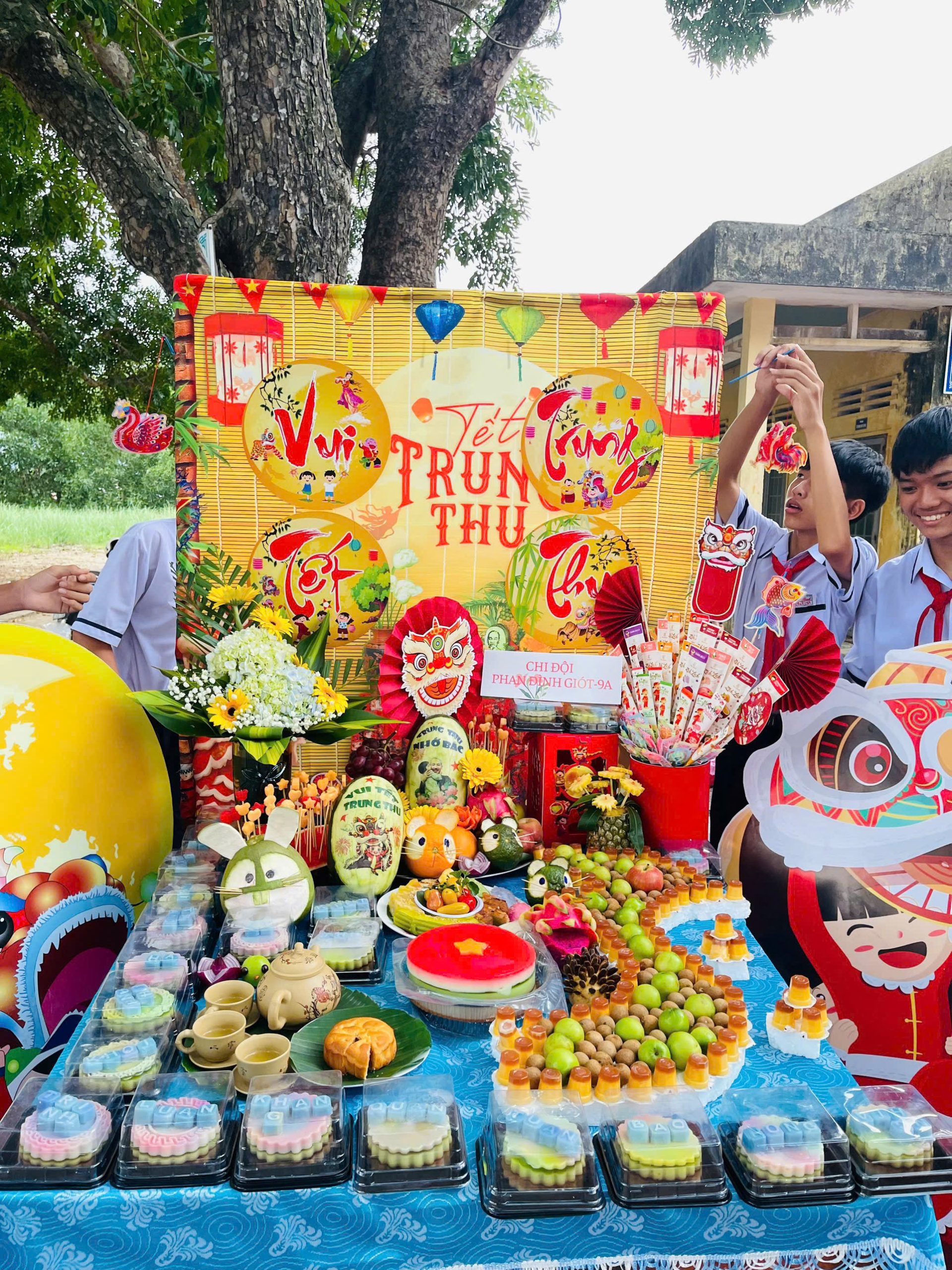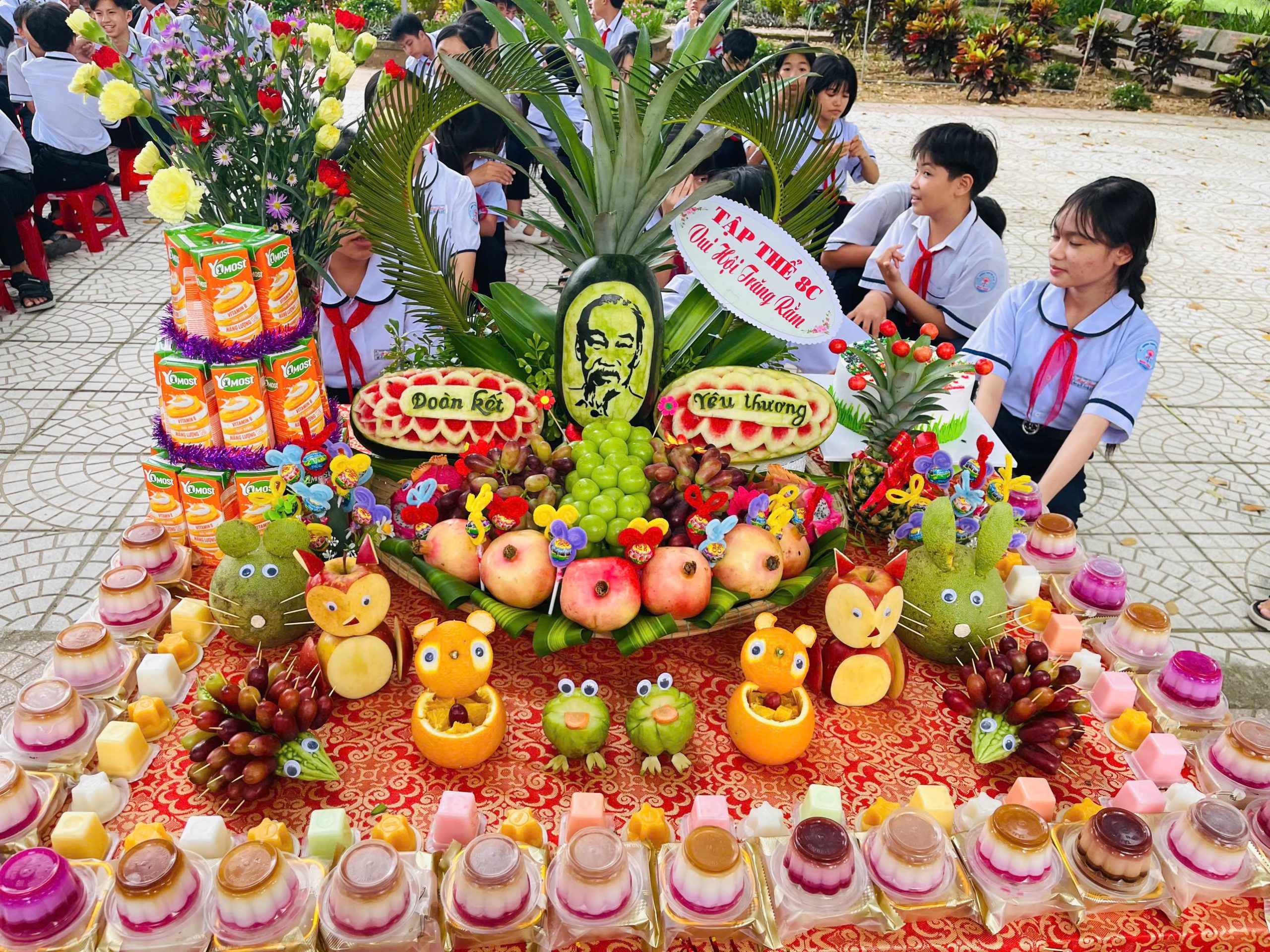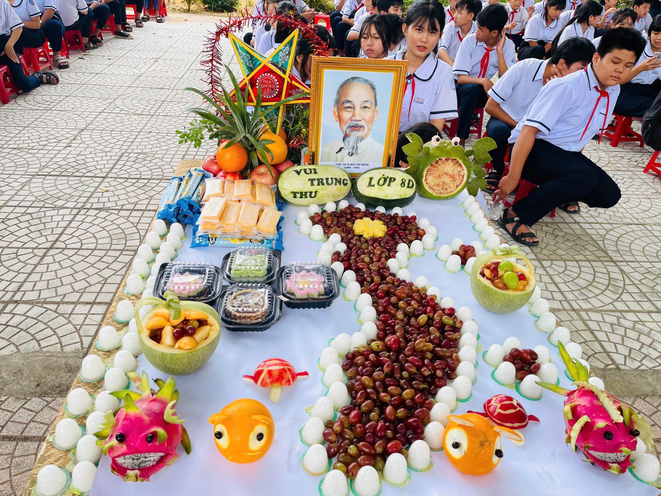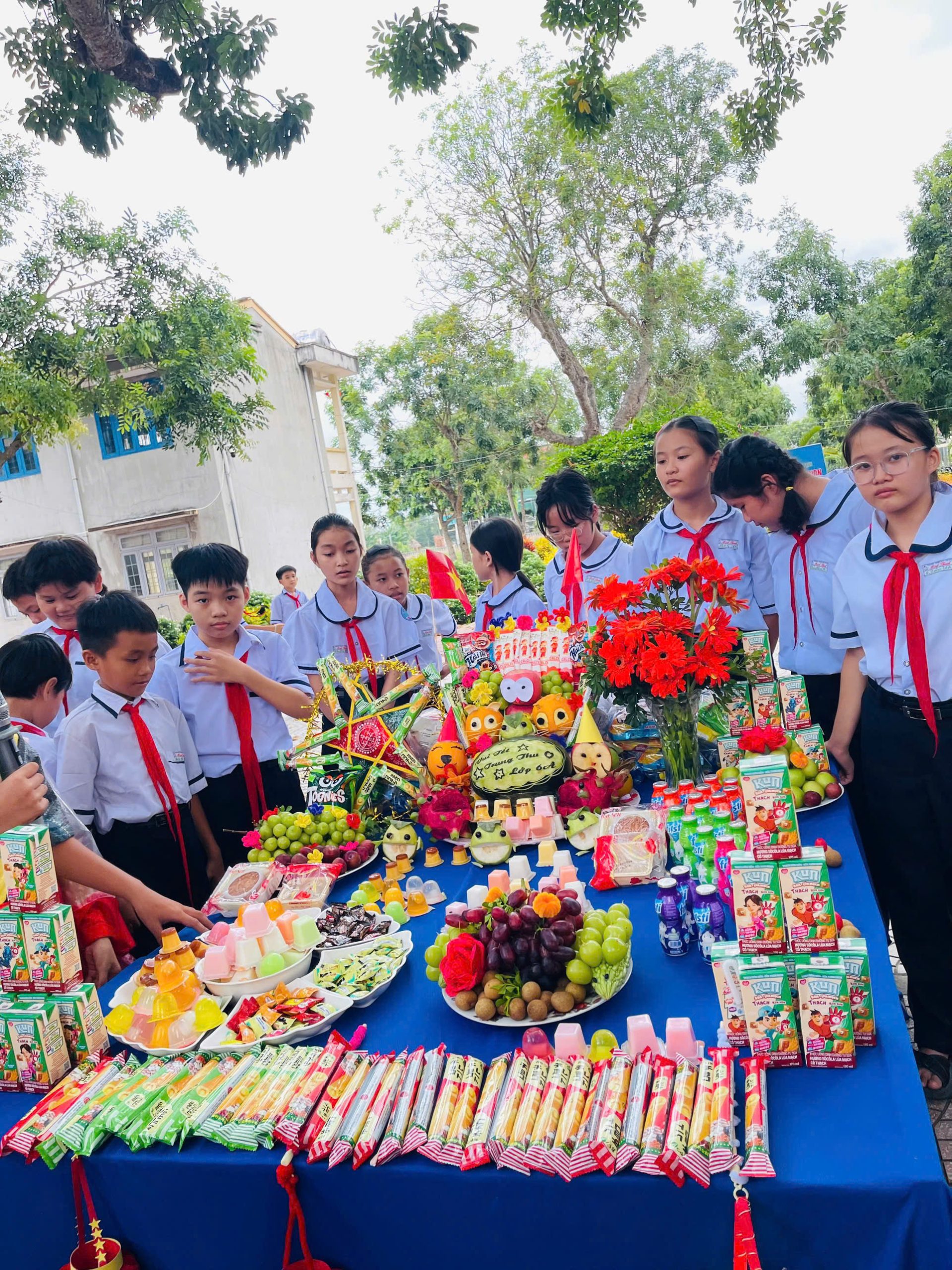Bên cạnh đó, phần thi trình bày và thuyết trình mâm cỗ Trung thu cũng để lại nhiều dấu ấn. Các lớp đã chuẩn bị những mâm cỗ xinh xắn, đầy đủ hương vị truyền thống: bánh nướng, bánh dẻo, trái cây ngũ quả, đèn ông sao, đầu lân… Không chỉ bày biện đẹp mắt, các em còn thể hiện khả năng thuyết trình tự tin, lưu loát, nêu bật ý nghĩa của từng loại quả, từng món bánh – biểu trưng cho hạnh phúc, đoàn viên, và ước vọng một năm học mới nhiều thành công.