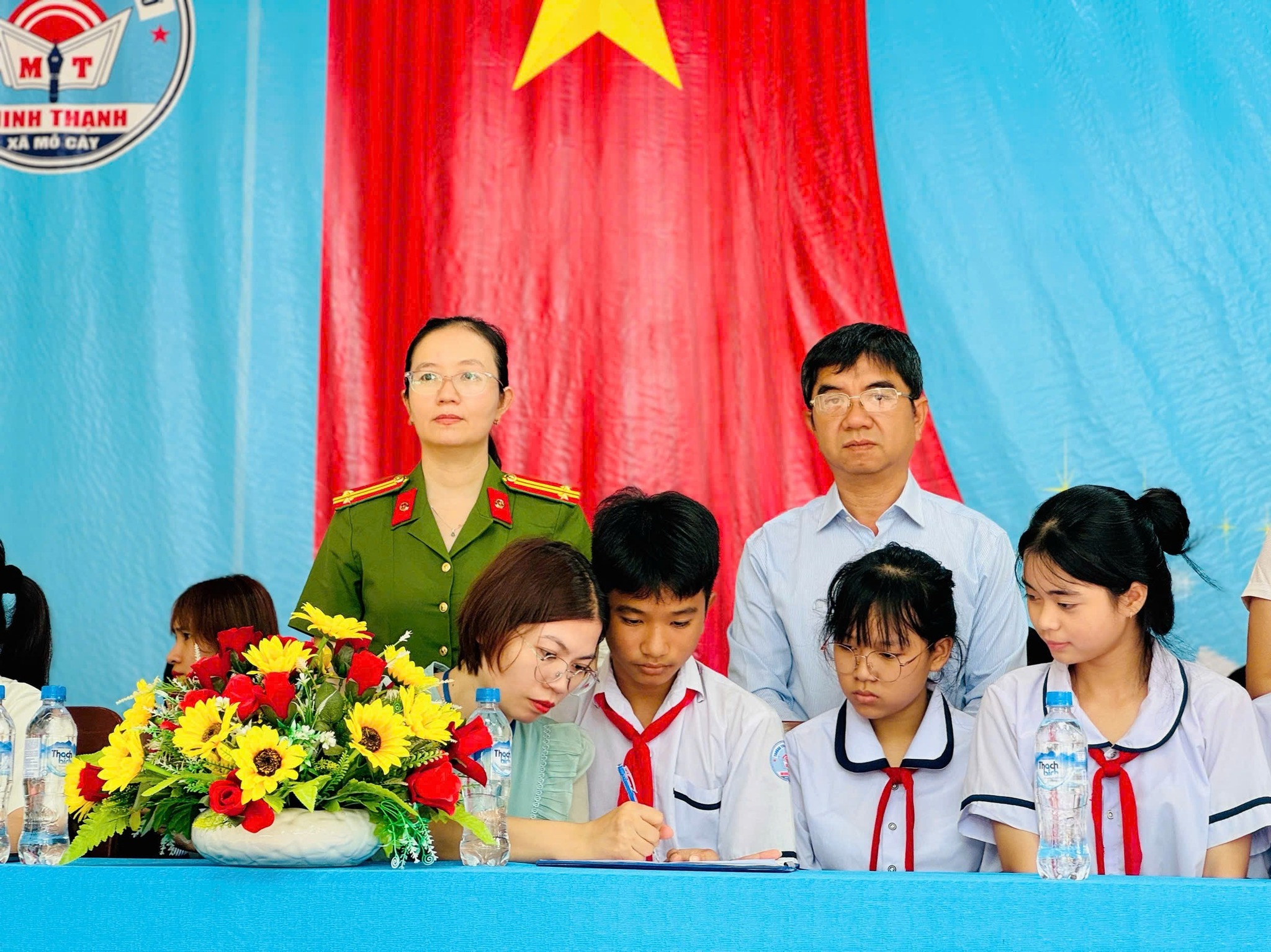Đặc biệt, để thể hiện quyết tâm thực hiện nghiêm túc những kiến thức đã được tuyên truyền, đại diện giáo viên chủ nhiệm cùng đại diện học sinh các lớp đã tham gia ký cam kết trước sự chứng kiến của Lãnh đạo và Công an xã. Nội dung cam kết tập trung vào việc chấp hành tốt luật giao thông, nói không với bạo lực học đường, phòng chống xâm hại tình dục và xây dựng môi trường học đường an toàn, lành mạnh. Đây là hoạt động có ý nghĩa sâu sắc, góp phần chuyển tải mạnh mẽ thông điệp về trách nhiệm của mỗi thầy cô và học sinh trong công tác phòng ngừa, đấu tranh với các hành vi vi phạm pháp luật.
